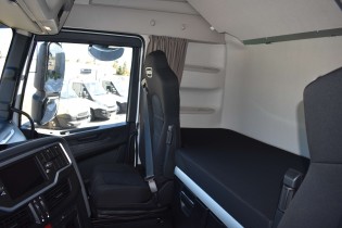 Équipement de la cabine : Couchette double, climatisation, bluetooth, freinage adaptatif, alerte de changement de voie, double tiroir réfrigérateur, chauffage, mode bascule, etc.